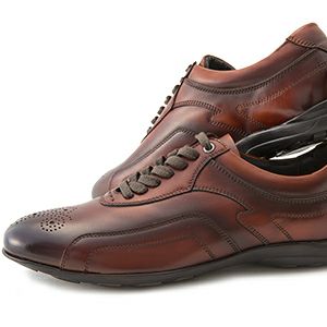 紳士靴で最もドレッシーなメダリオンをあしらったモデルをモチーフにした華やかさと、スニーカー仕立てが可能にする軽快な履き心地は、靴のバリエーションの両端を結びつけた"融和"の発想。