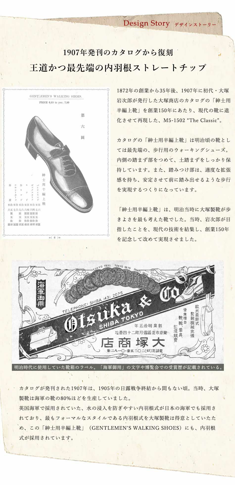 既存の価値観の崩壊に遭遇し、文明開化の名の下に西洋の文化を表面的に受け入れていく時代の中で、「日本人のための靴を」という信念を以って誕生した大塚製靴。