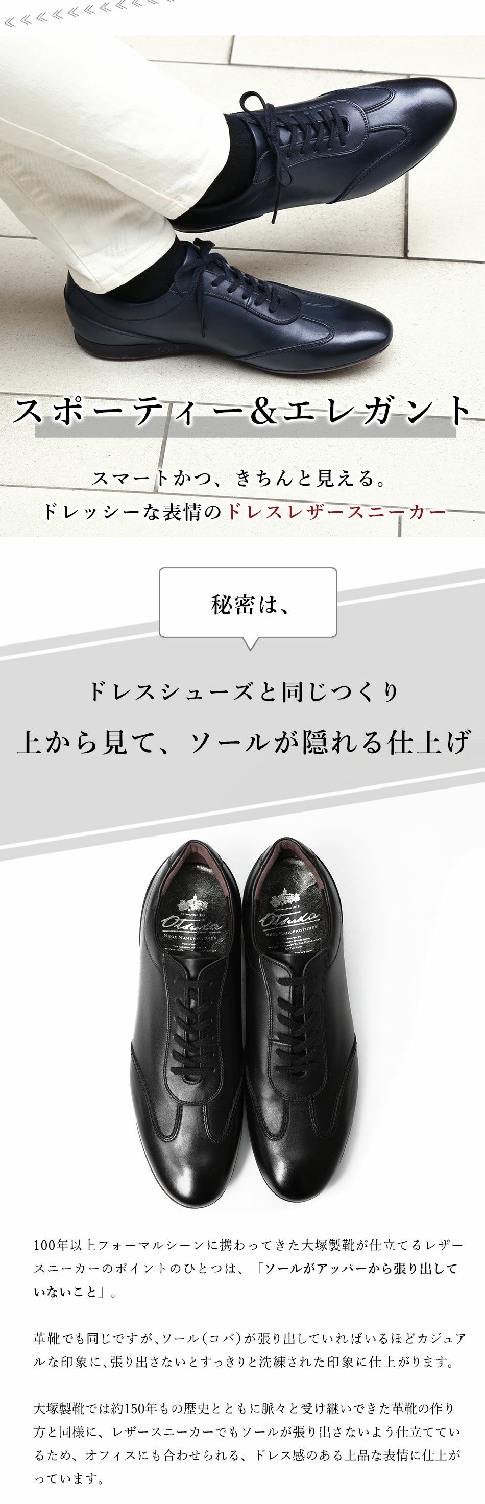 他の画像を見る 大塚製靴(OTSUKA/オーツカ) OT-6028 タフ&エレガント。ビジネスシーンにも活躍する外羽根ドレススニーカー(ヴィブラムソール) 税込価格 ¥ 43,890 税込 カートに入れる お気に入りに登録する
