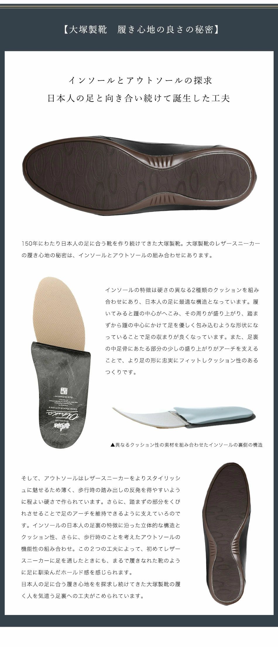 他の画像を見る 大塚製靴(OTSUKA/オーツカ) 日本最古のシューメーカーが作る、革靴のように使えてスーツに似合うドレスレザースニーカー HS-6009 ジェントル 税込価格 ¥ 43,890 税込 カートに入れる お気に入りに登録する