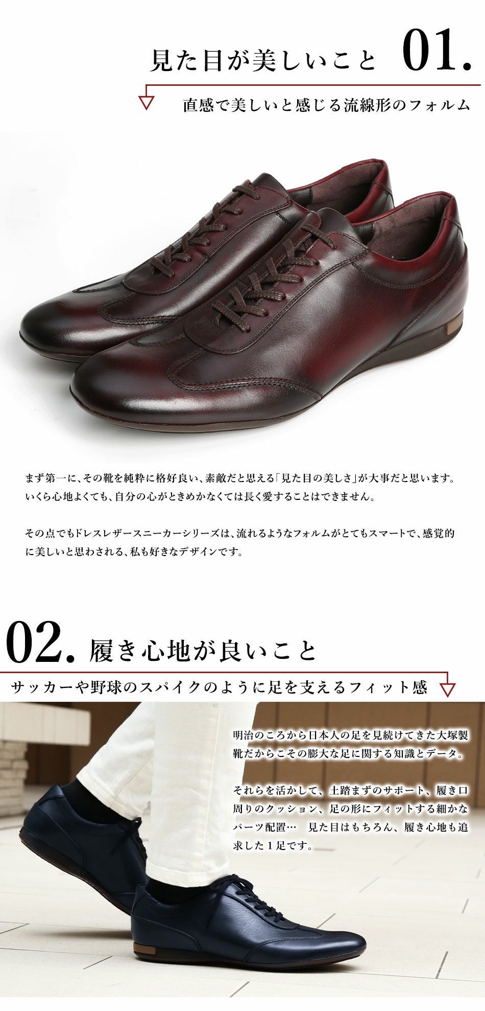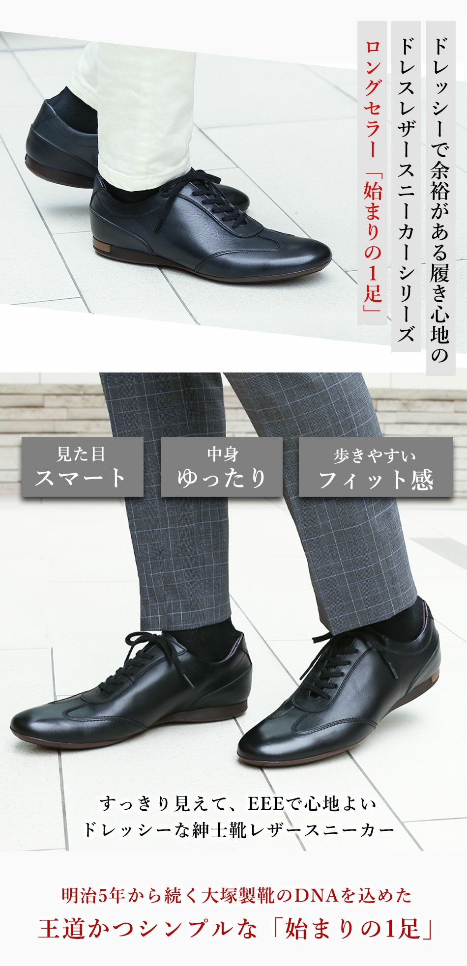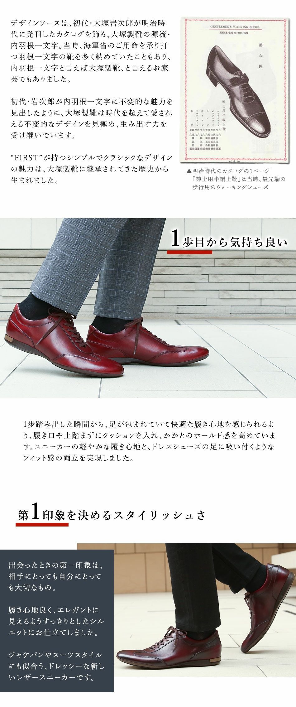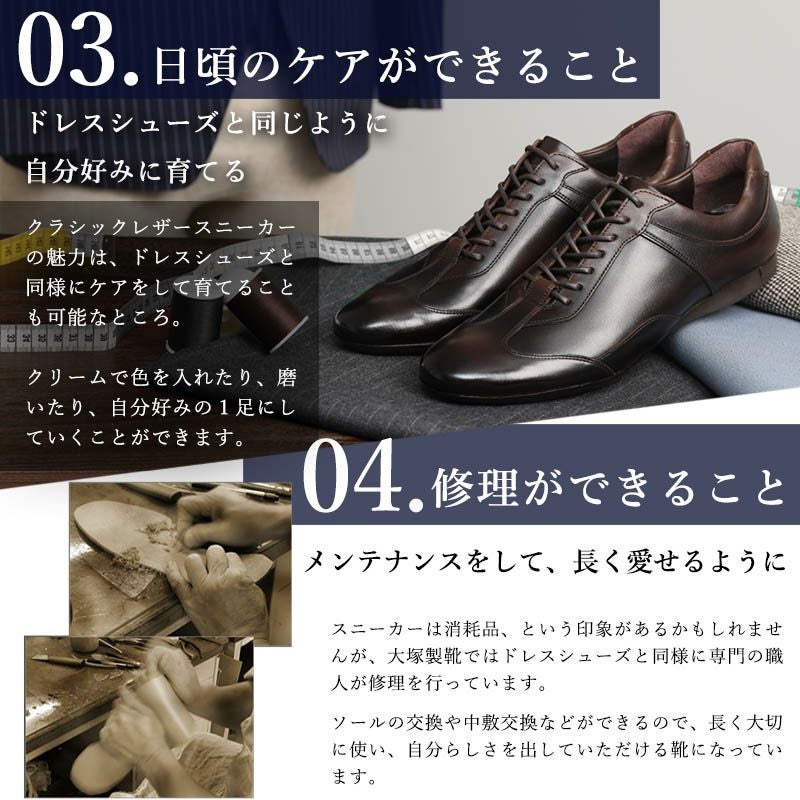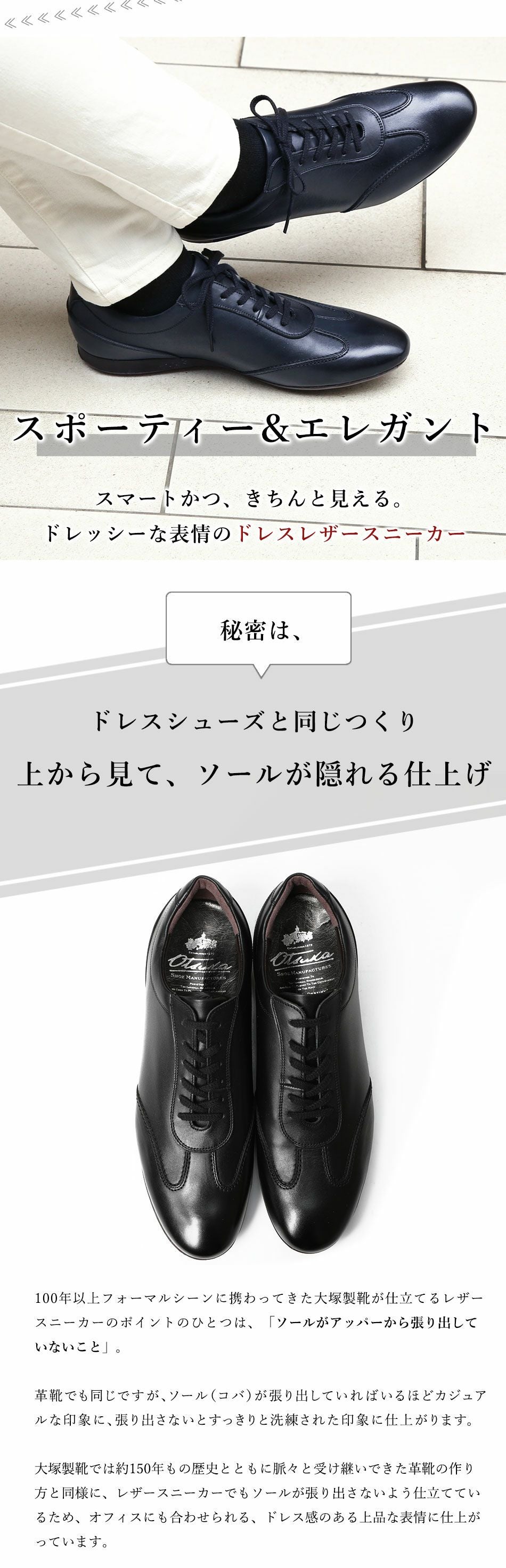 他の画像を見る 大塚製靴(OTSUKA/オーツカ) 日本最古のシューメーカーが作る、革靴のように使えてスーツに似合うドレスレザースニーカー HS-6009 ジェントル 税込価格 ¥ 43,890 税込 カートに入れる お気に入りに登録する