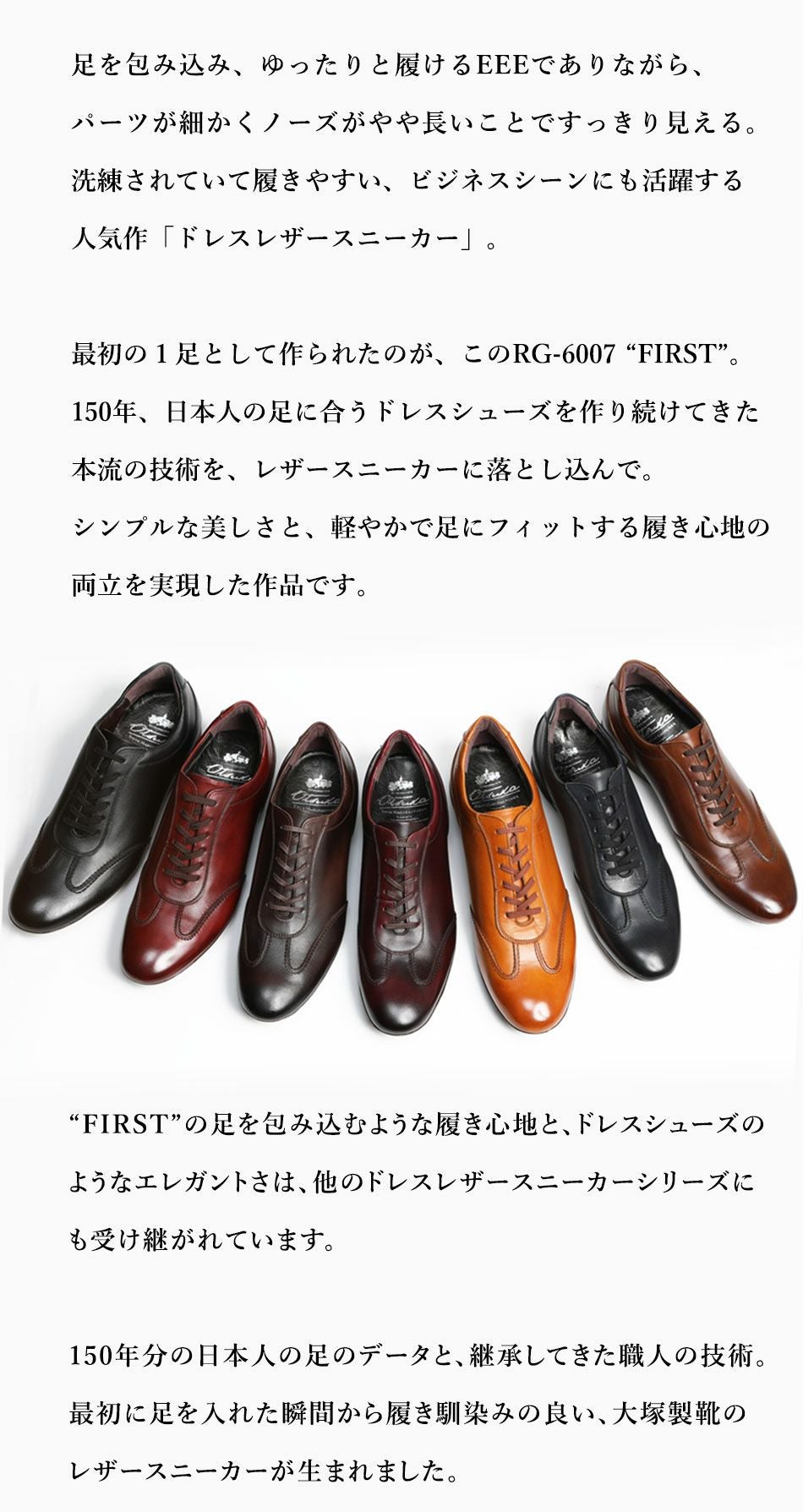 他の画像を見る 大塚製靴(OTSUKA/オーツカ) 【王道クラシックな人気作】 始まりのレザースニーカー RG-6007 ファースト 本流のクラシックレザースニーカー 税込価格 ¥ 43,890 税込 カートに入れる お気に入りに登録する