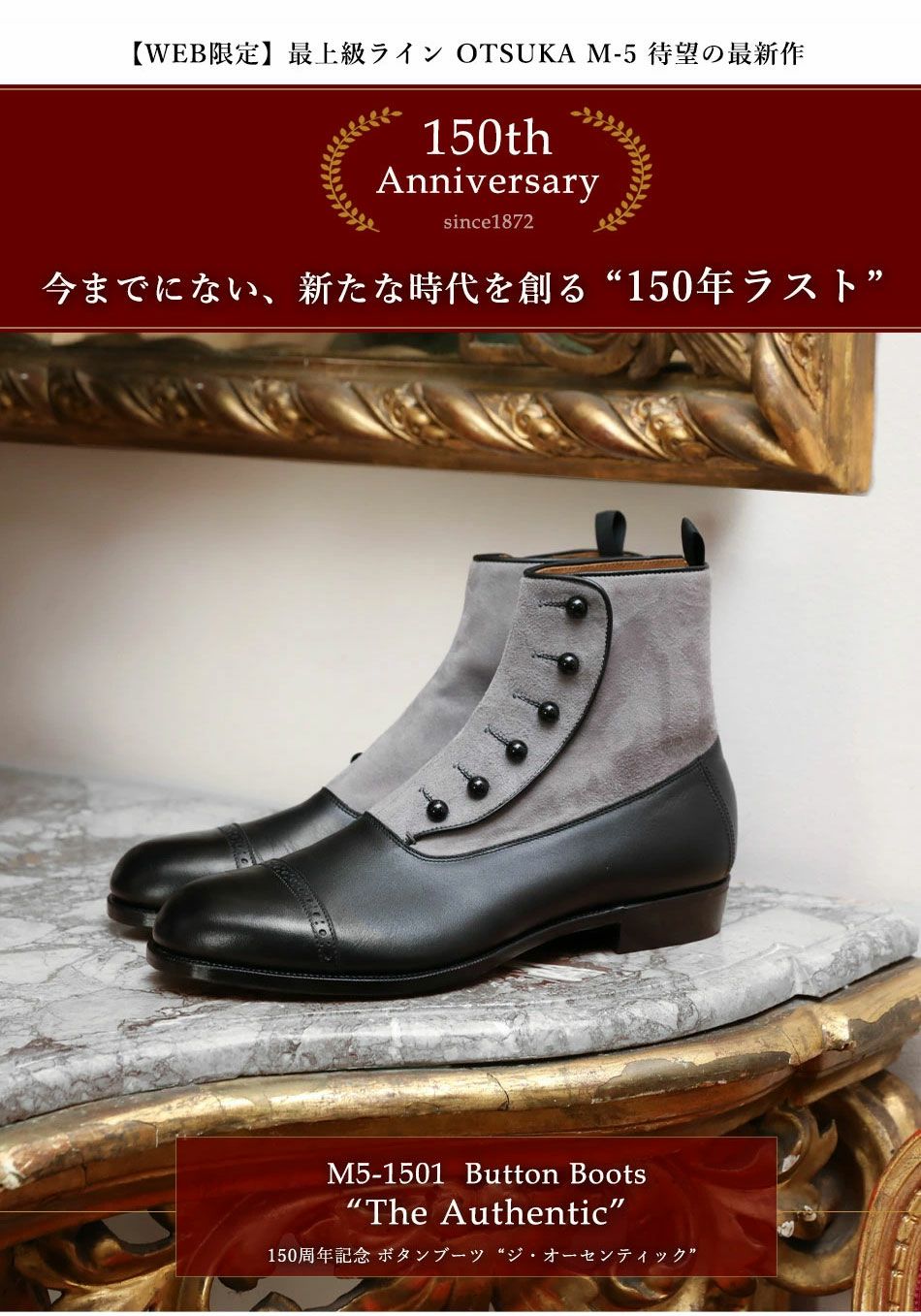 他の画像を見る 150thアニバーサリーモデル【大塚製靴/オーツカ/otsuka】最上級ライン OTSUKA M-5 M5-1501 ボタンブーツ “The Authentic”(ジ・オーセンティック) ブラック カタログから復刻した限定モデル 予約商品 予約販売価格 ¥ 249,700 税込 ×完売 詳細を見る お気に入りに登録する
