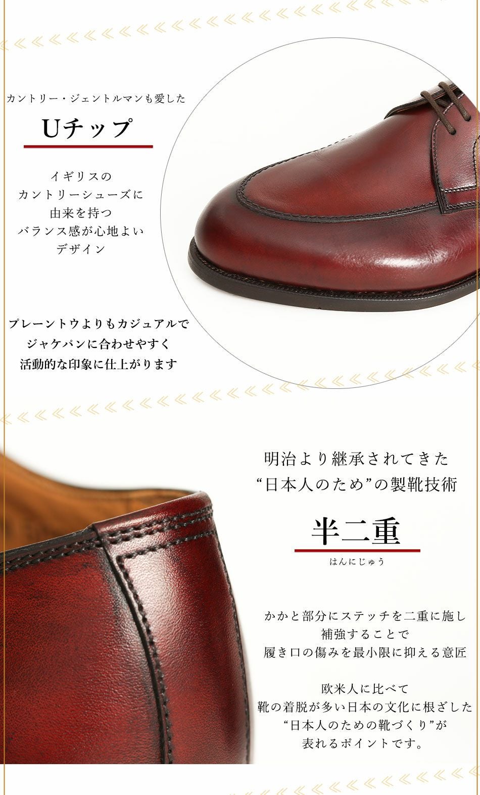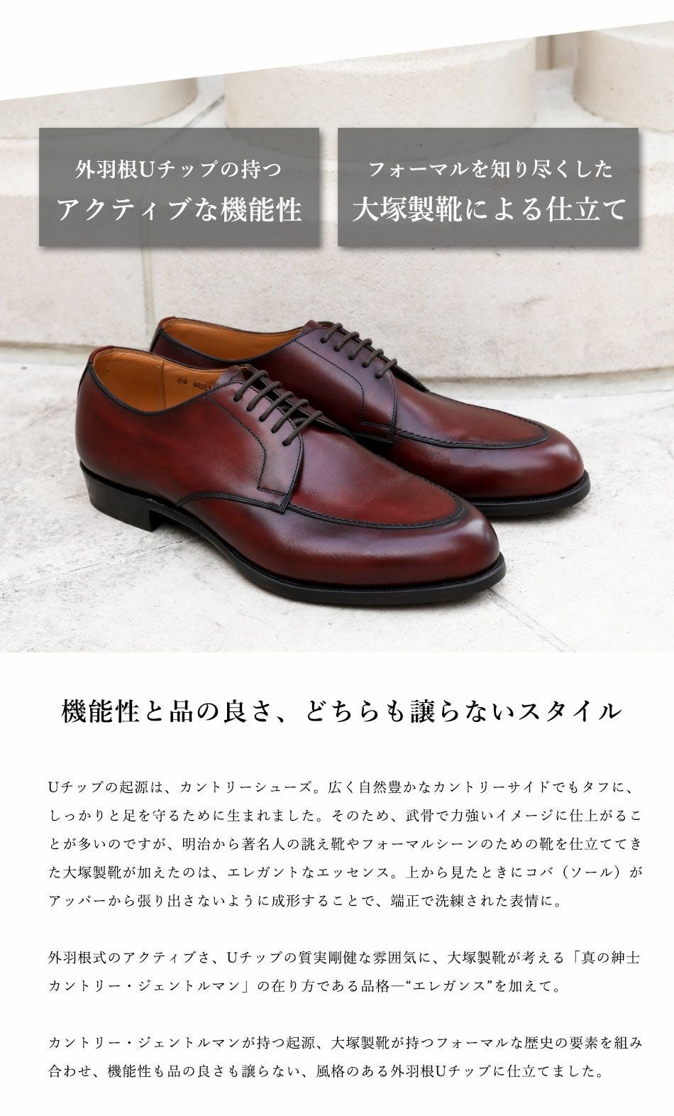 他の画像を見る 【大塚製靴/オーツカ/otsuka】最上級ライン OTSUKA M-5 真の紳士「カントリー・ジェントルマン」をイメージ。 M5-1504 外羽根Uチップ “Country Gentleman”(カントリージェントルマン) バーガンディ 日本人の70%の足型に合う「150年ラスト」【2026年5月下旬頃出荷】 予約商品 予約販売価格 ¥ 109,890 税込 カートに入れる お気に入りに登録する