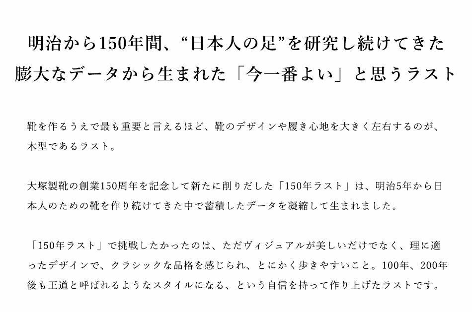 他の画像を見る 150thアニバーサリーモデル【大塚製靴/オーツカ/otsuka】最上級ライン OTSUKA M-5 M5-1502 内羽根ストレートチップ “The Classic”(ザ・クラシック) ブラック カタログから復刻した限定モデル【2026年5月下旬頃出荷】 予約商品 予約販売価格 ¥ 109,890 税込 カートに入れる お気に入りに登録する