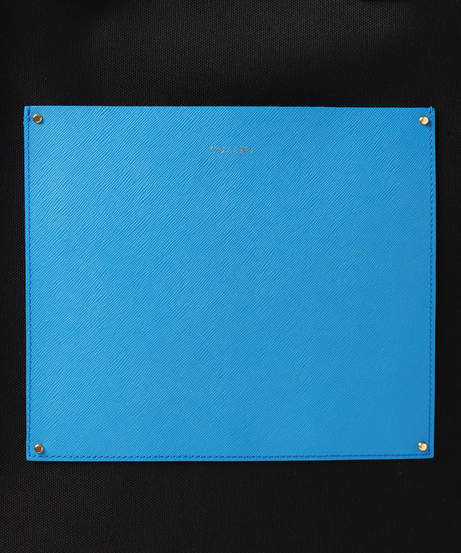 非常にシャープなシルエットであることに加えて、「ブランドネームの箔押し」と「ポケット四隅の金具」が実にエレガントに仕上がっています。