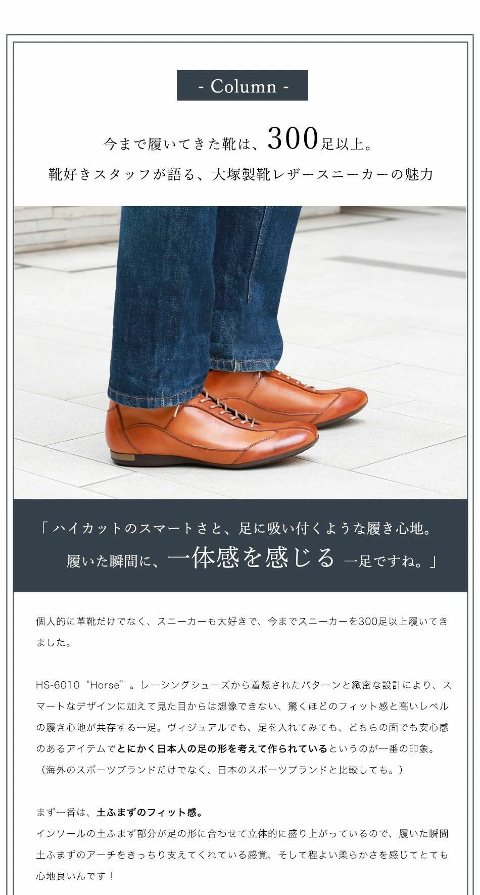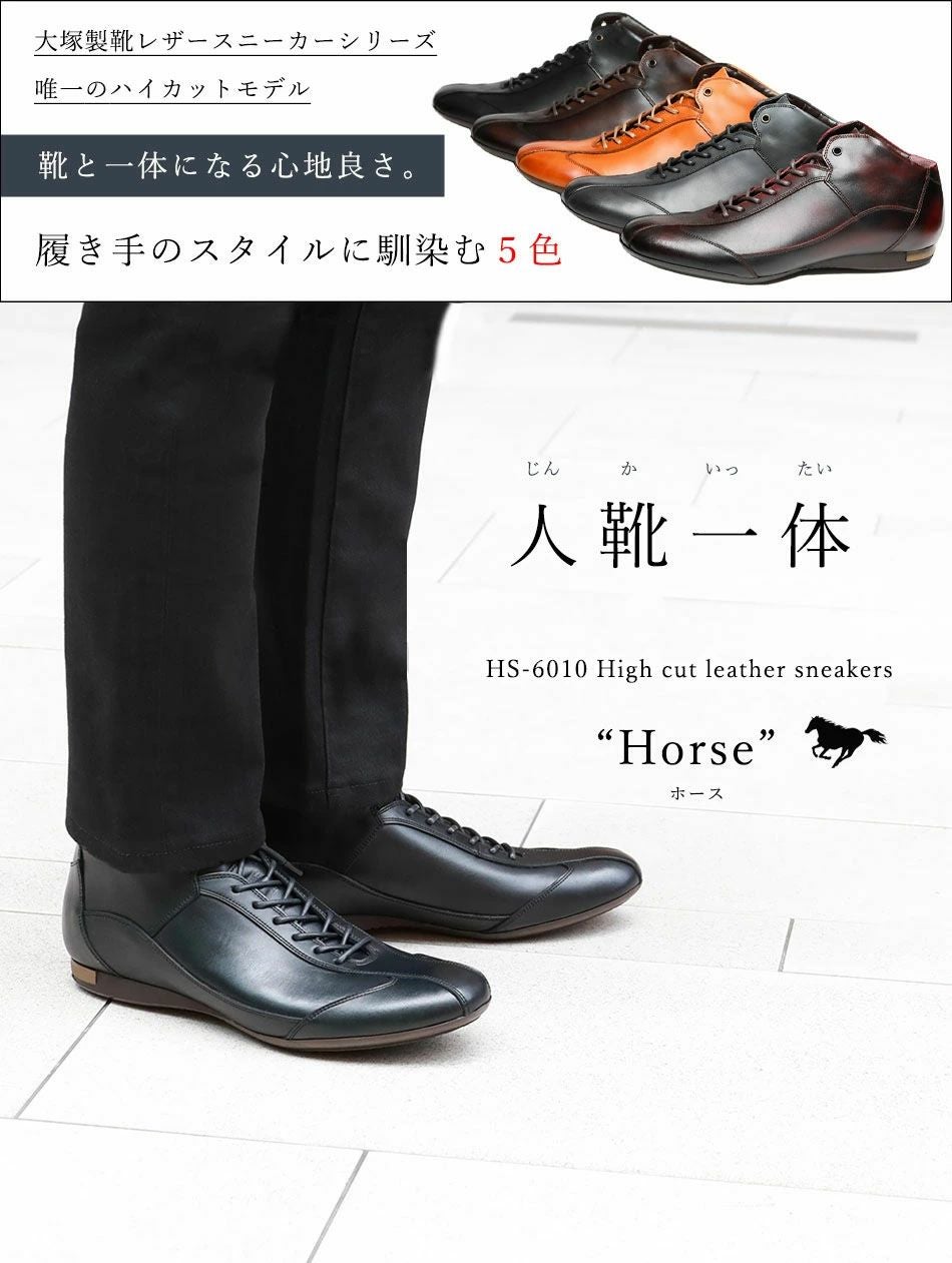 他の画像を見る 大塚製靴(OTSUKA/オーツカ) 【 人靴一体 】 靴と一体になる心地よさ HS-6010 ホース クラシックレザースニーカー/ハイカットver. 税込価格 ¥ 48,950 税込 カートに入れる お気に入りに登録する