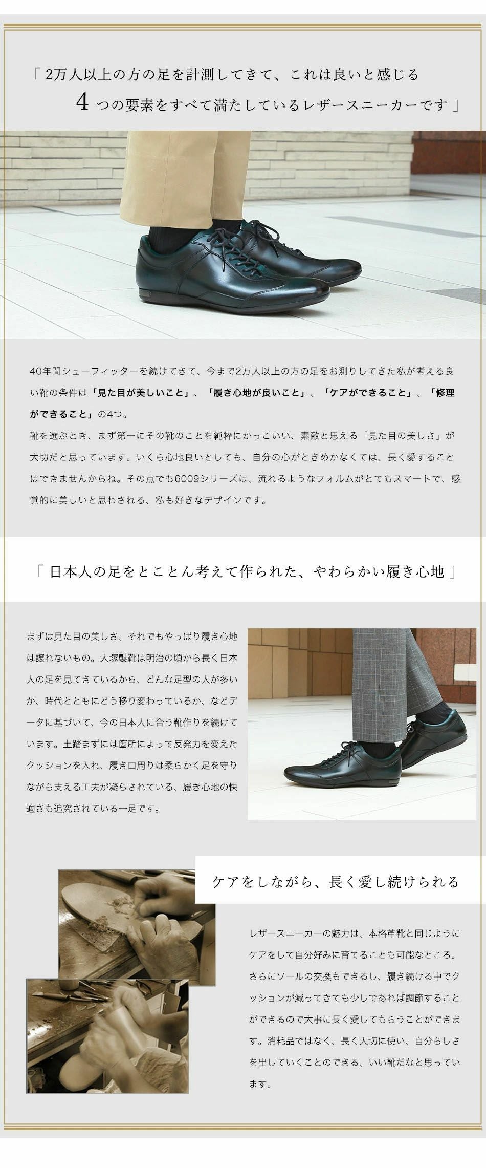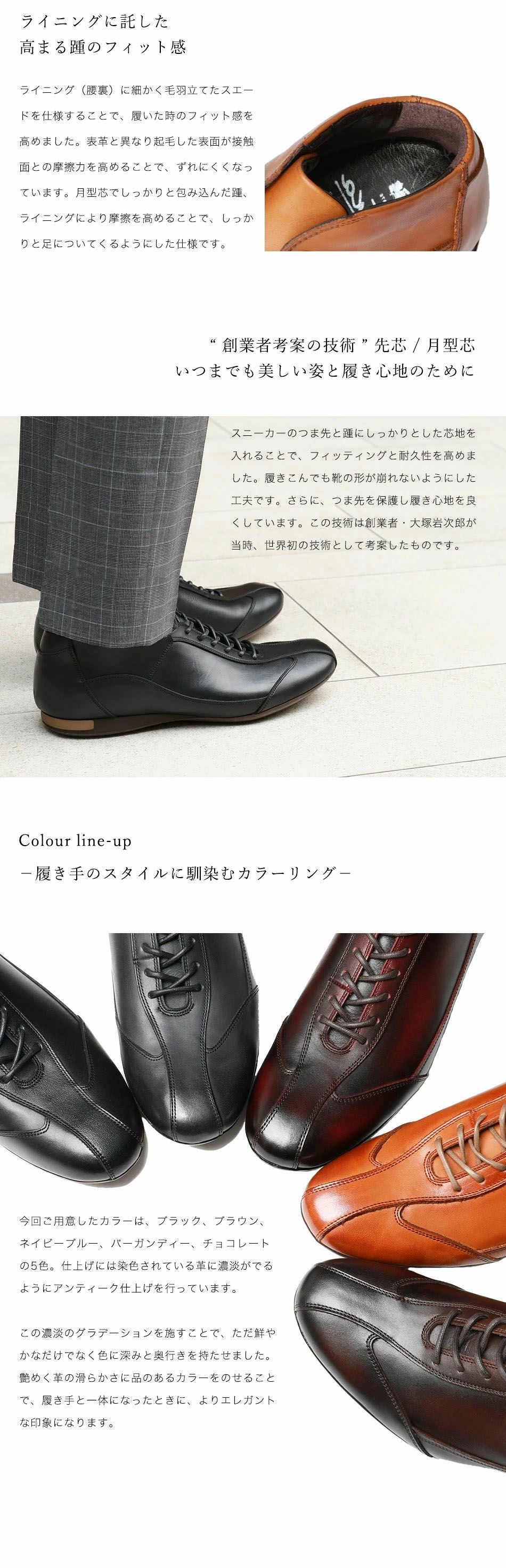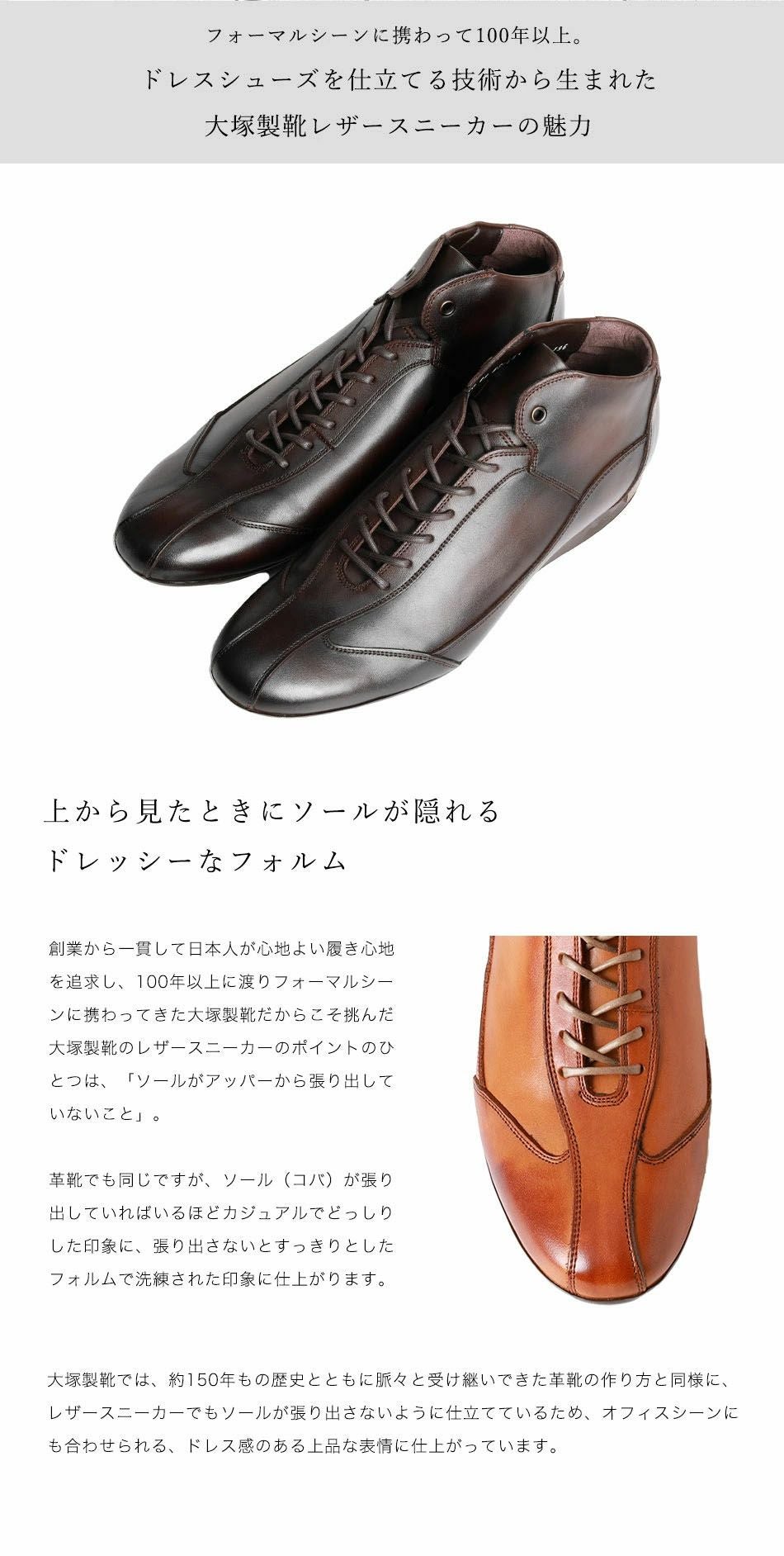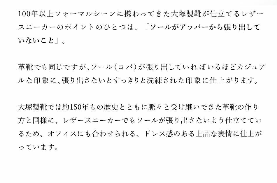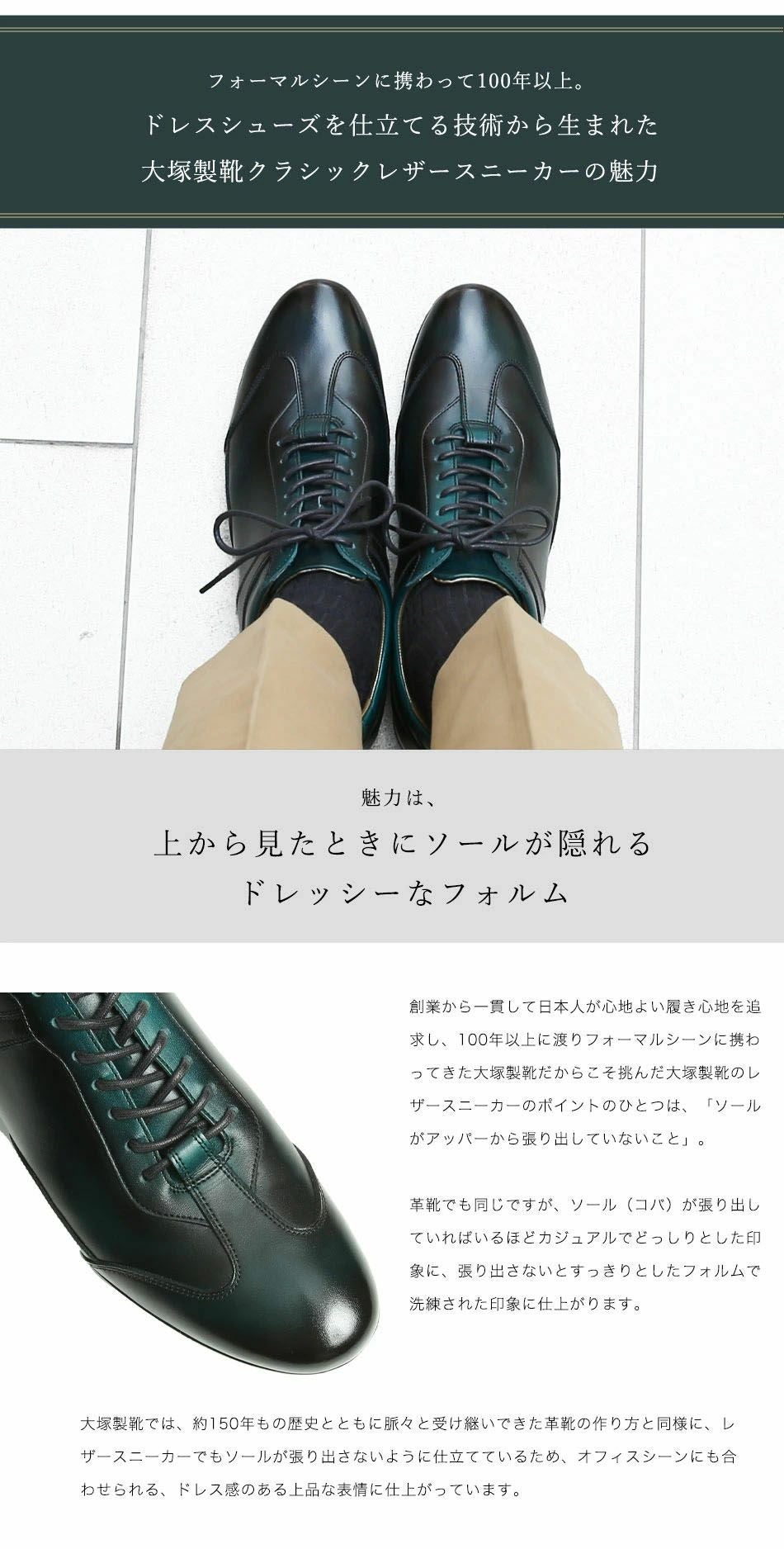 他の画像を見る 大塚製靴(OTSUKA/オーツカ) 日本最古のシューメーカーが作る、革靴のように使えてスーツに似合うドレスレザースニーカー HS-6009 ジェントル 税込価格 ¥ 43,890 税込 カートに入れる お気に入りに登録する