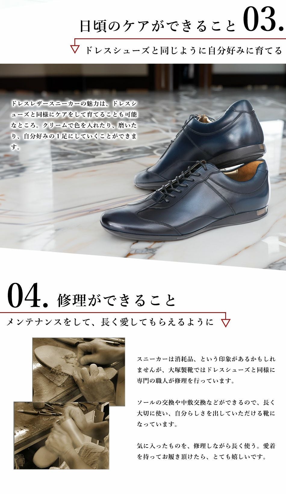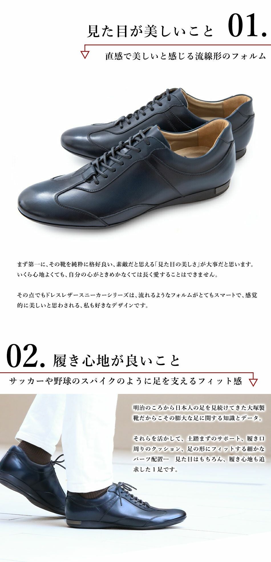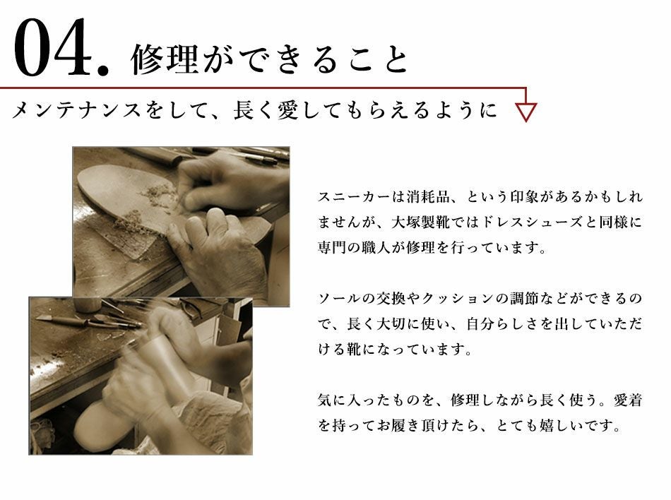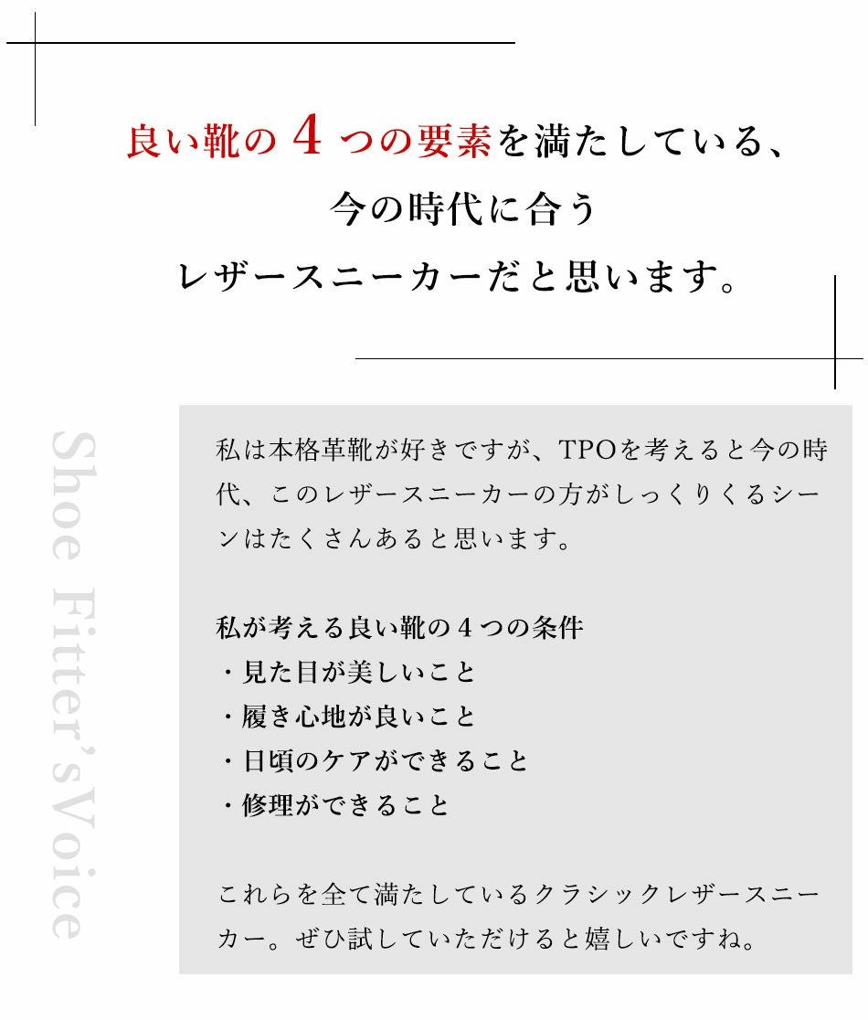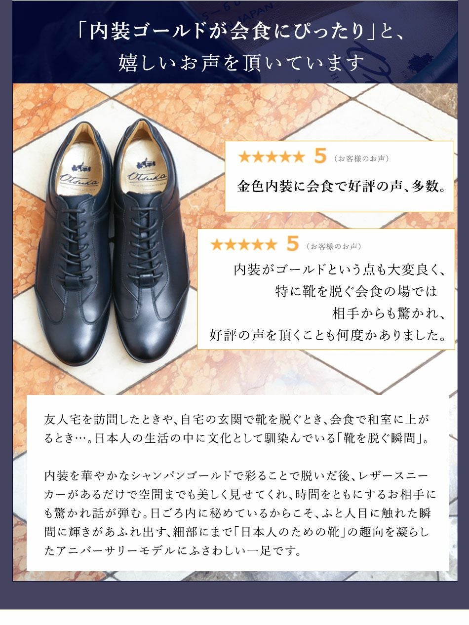 他の画像を見る 大塚製靴(OTSUKA/オーツカ) 日本最古のシューメーカーが作る、革靴のように使えてスーツに似合うドレスレザースニーカー HS-6009 ジェントル 税込価格 ¥ 43,890 税込 カートに入れる お気に入りに登録する