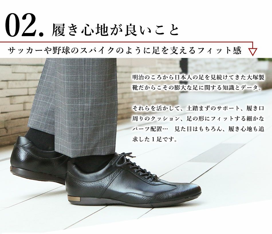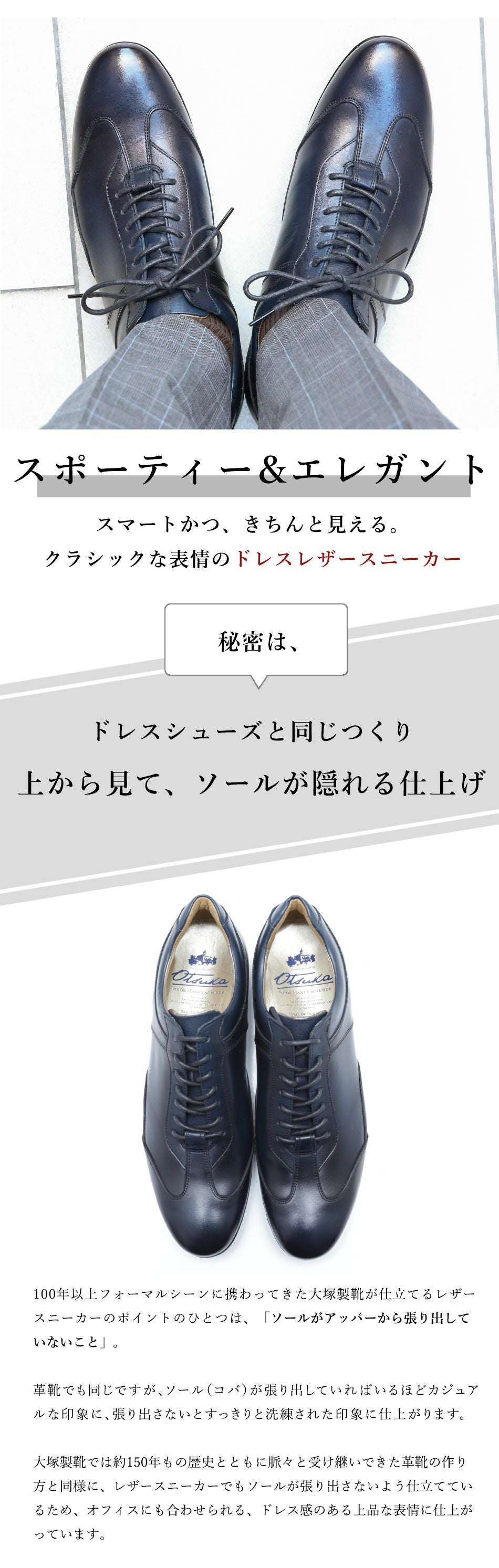 他の画像を見る 大塚製靴(OTSUKA/オーツカ) OT-6028 タフ&エレガント。ビジネスシーンにも活躍する外羽根ドレススニーカー(ヴィブラムソール) 税込価格 ¥ 43,890 税込 カートに入れる お気に入りに登録する