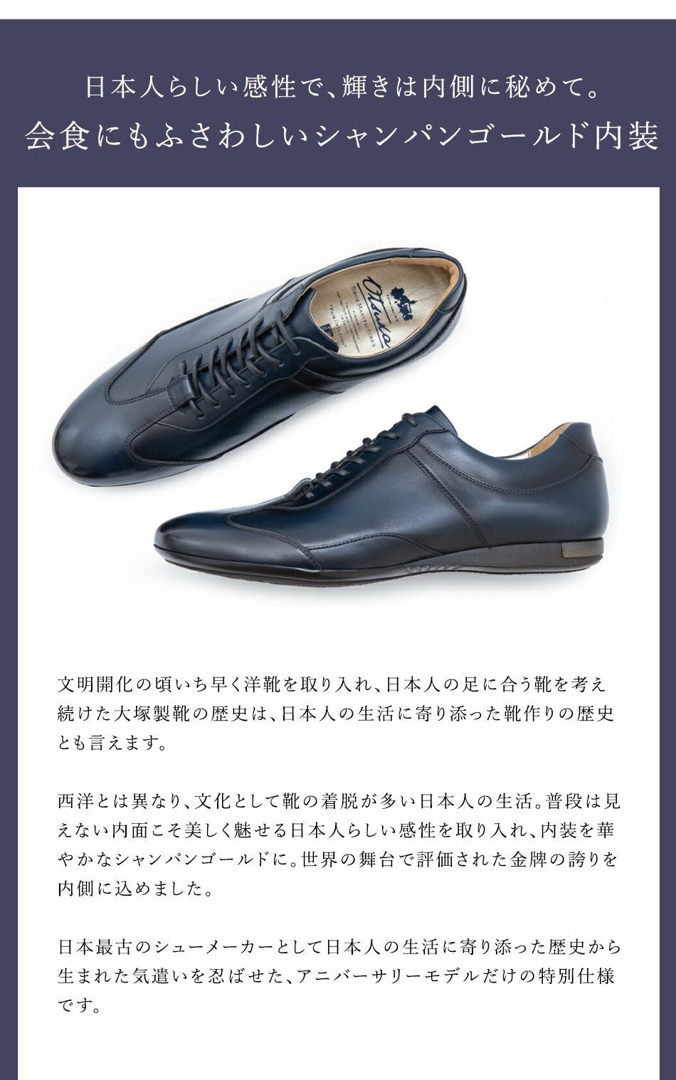 他の画像を見る 大塚製靴(OTSUKA/オーツカ) 【アニバーサリーモデル】 HS-6009NA クラシックレザースニーカー 英国王室にも愛される高貴な特注色ロイヤルブルー(スペシャルエディション) 税込価格 ¥ 54,890 税込 カートに入れる お気に入りに登録する