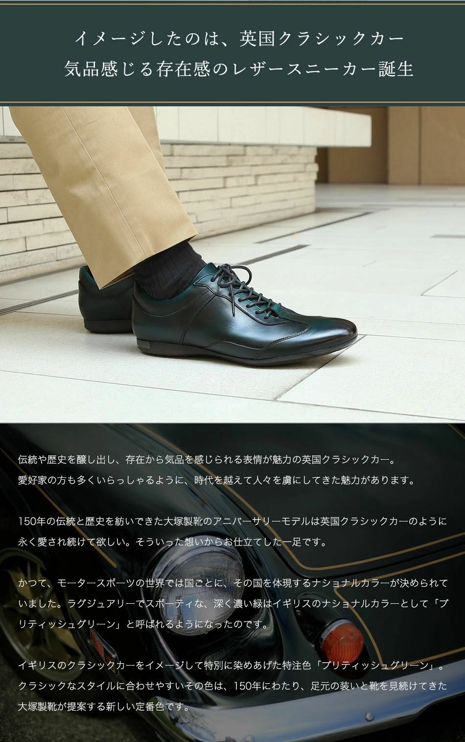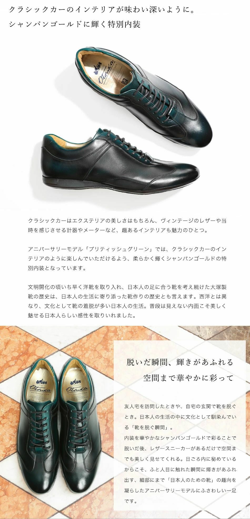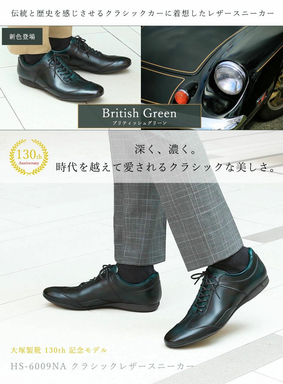 他の画像を見る 大塚製靴(OTSUKA/オーツカ) 【アニバーサリーモデル】英国クラシックカーに着想 HS-6009NA ブリティッシュグリーン クラシックレザースニーカー(スペシャルエディション) 税込価格 ¥ 54,890 税込 カートに入れる お気に入りに登録する