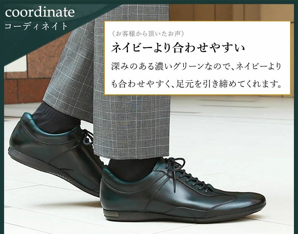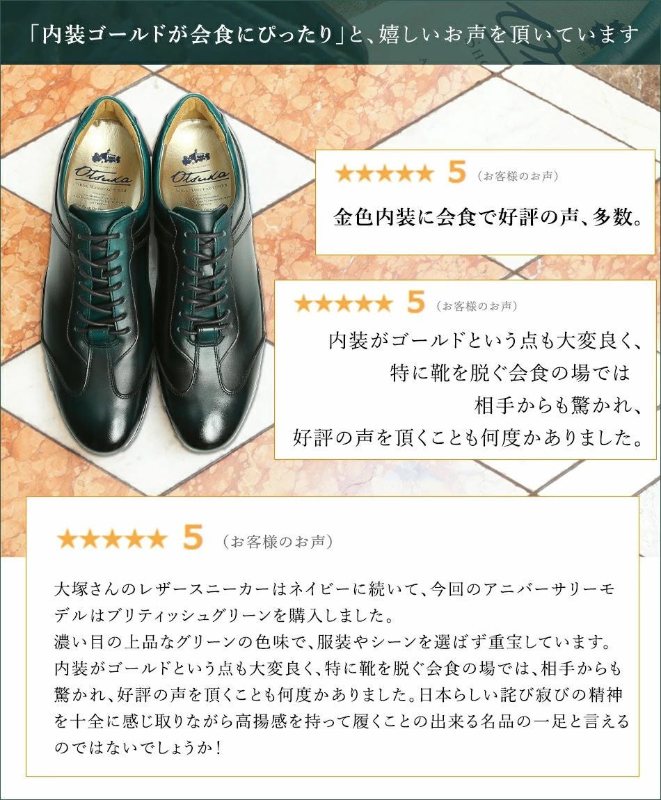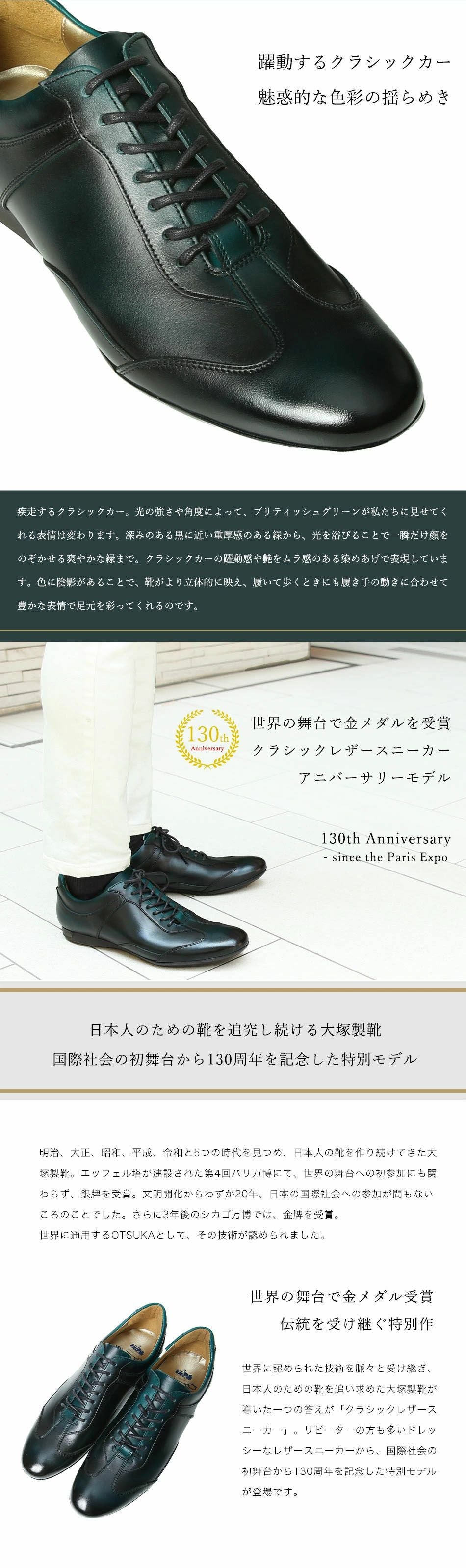 他の画像を見る 大塚製靴(OTSUKA/オーツカ) 【アニバーサリーモデル】英国クラシックカーに着想 HS-6009NA ブリティッシュグリーン クラシックレザースニーカー(スペシャルエディション) 税込価格 ¥ 54,890 税込 カートに入れる お気に入りに登録する